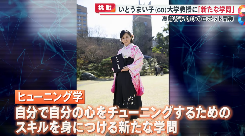 2025年4月から、受講生のいとうまいこさんが、4月から都内にある「情報経営イノベーション専門職大学」の大学教授として教鞭をとり、「ヒューニング学」を教える件が、1月21日フジテレビの「めざまし8」にて紹介されました。